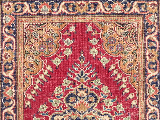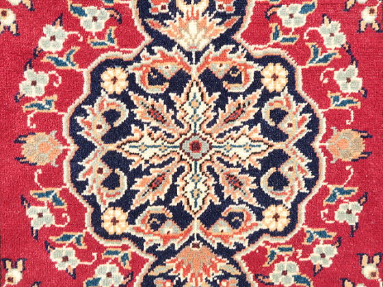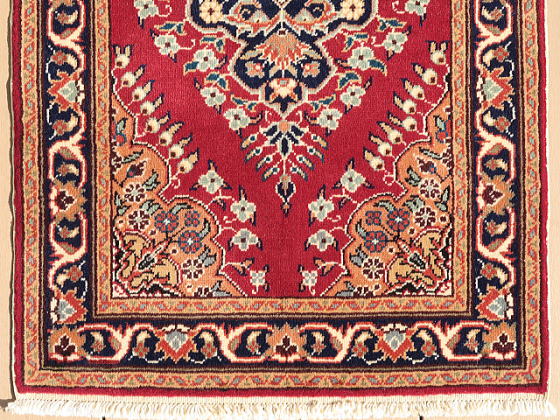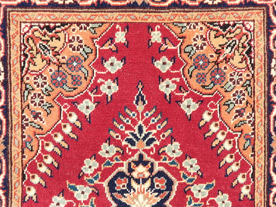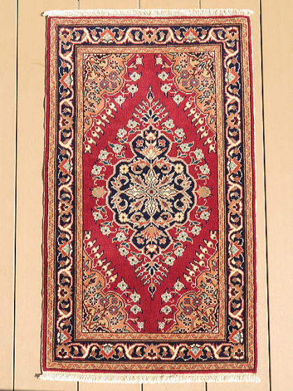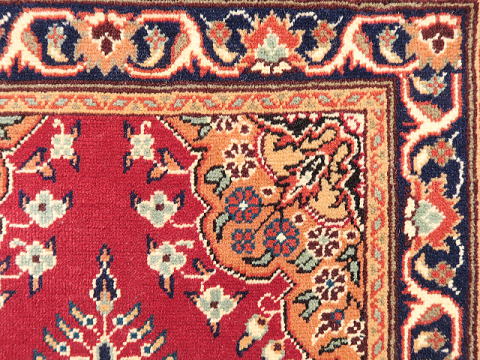 | ハジュラルのヤストック絨毯。 カイセリの中心部、ハジュラル市/地区で厳選された素材と熟練の職人を雇って制作していた絨毯だけが、その名で呼ばれます。 特にこのシリーズは、図柄やパイルの結び目といった点で、総合的なこだわりが強く感じられる絨毯です。 何かしらお祝いの為のものだと思いますが、お祝いだからと言って高いお金を支払う財力がなければ、このような絨毯を発注できません。 持ち主は、相応に財力のある家庭だったと思います。 さて、これの特徴です。 どのハジュラルにも、椅子の上掛けとして使われた際のパイルの擦れが大なり小なりあります。 これはその擦れが比較的多めだったので、修理に出しました。 修理したのはマラティアの私の知り合い、安く仕上げてくれると期待したのに、修理代金がこの原価と同じでした。 そのまま価格に反映すると、このハジュラルは2倍の金額になってしまうため、かなり頑張った価格設定としました。 プロの職人が修理したので、上と下の房は切り揃えられています。 何処を修理してあるのか、当時、マラティアの絨毯屋仲間と探しましたが、分かりませんでした。 その位のレベルで修理していますから、ある意味、お買い得です。 |
