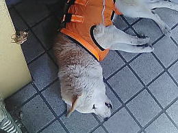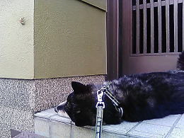 「早ぅ出んと、暑ぅなるぇ。」とリードを引っ張っても動じず。