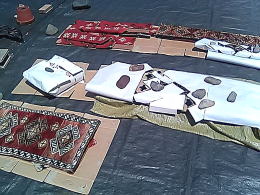 表側と後ろ側の境目のの極々まで日に晒したいので、表側にずれている後ろ側を境目まで戻す。