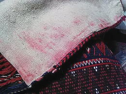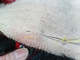 生地が厚くて硬い生地を、ザクザクと3〜4段縫って固定。