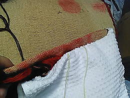 房まで縫いそうになり、何度かやり直し。