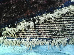端が擦り切れた絨毯の房止め。