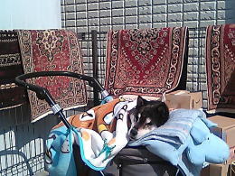 日曜日、ぽかぽか陽気の中で絨毯の撮影 (-_[◎]o→