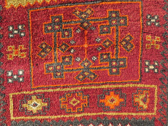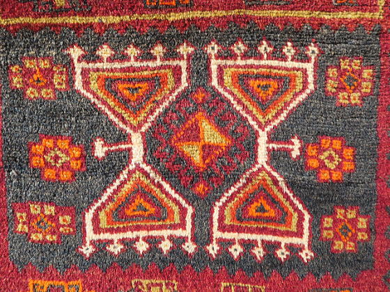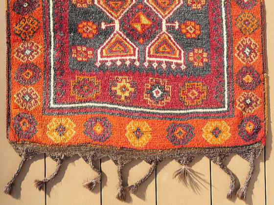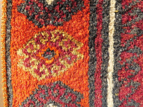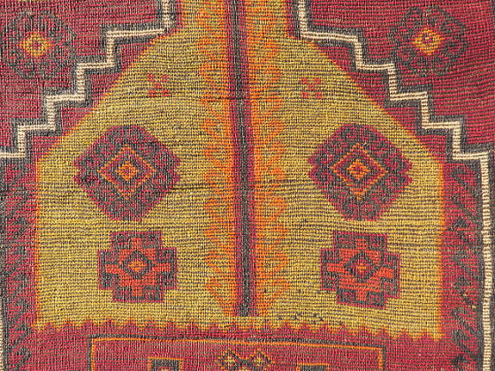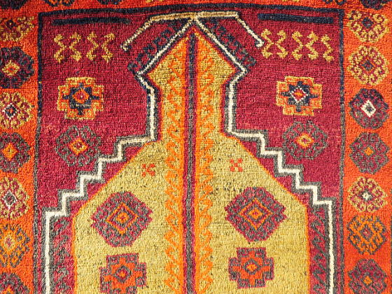 マラティア県ポルガ村のお祈り用絨毯。 カイセリにあるコレクター御用達の店のオーナーから譲り受けました。 人生を美しいキリムと絨毯の収集に捧げてきた方で、ピシニクの絨毯ヤストックを買い取ったのとほぼ同時です。 カイセリのバサール中心部の良く目立つ場所にあるので、訪問すれば簡単に見つけられます。 ただ、カイセリに絨毯を買いに来る観光客は殆どなく、店を開けるのは暇な時だけ、オーナーも販売に消極的(言い値が高い)で、店内には以前ほど目ぼしい物は残ってはいません。 その上、彼自信のプライベートなコレクション類は別の雑居ビルの一室に隠してあります。 偶々、私が訪問した時は現金が必要になったらしく、その一室に案内され、今まで見た事もない品々を人生で初めて目にしました。 そこで買い取った、一番高価なものがこのポルガ。 今回の掲載に際して、あまり詳しくない私は、ポルガについてAIで調べました。 以下はその内容を繋ぎ合わせたものです。 「Porga」は、トルコのマラティヤ(Malatya)県イェシルユルト(Yeşilyurt)地区に位置するポルガ(Porga)という地域、特にその美しいポルガ渓谷(Porga Valley)や、ポルガ村で知られる、自然と伝統文化が豊かな場所を指します。 この地域は、豊かな生物多様性や、タシカン族による伝統的な織物(キリム)などで有名です。 春から夏にかけては、高原や希少な高山植物、色とりどりの花々が楽しめる景勝地です。 ポルガ村: かつては地区の中心的な村であり、20世紀初頭から続く歴史的な集落です。 伝統工芸としては、タシカン族(Tashikan)によって織られた、祈祷用キリム(絨毯の一種)等が知られています。 タシカン族: トルコ東部アナトリア地方の、特にマラティヤ県イェシルユルト地区のポルガ村周辺に居住していた(あるいは関連する)クルド系部族の名前として知られています。 彼らが織ったキリム(絨毯)は、その地域独特の工芸品として識別されています。 以上の様に、ポルガの概要が把握できます。 ※AIによるサーチはネット上の情報の寄せ集めなので、全てが正しいとき限りません。 さて、初めてこれに触れた時、これほど毛並みが柔らかい絨毯があるものなのかと思いました。 オーナーからポルガだと聞かされ、その色合いとデザインから直ぐに納得しましたが、初めて目にするポルガの祈祷用絨毯、詳しい事は分かりません。 唯一、ボーダーのドラゴン模様がシナンと同じで、この地の産である事を証明しています。 ミフラブトップの亀の頭のような形はシナンに似ていますが、フィールド内の階段状のミフラブは、アラブギルの祈祷用絨毯に近いものがあります おそらく、織り手の娘さんが、地元に伝わるデザインを基にして婚礼用に考えたものでしょう。 制作後、極短期間使用された後はずっとしまい込んでおかれたもののようで、裏面も全く同じ色合い。 房の編み込みを見ての通り、経糸にヤギの毛が使われているので、硬い質感なのかと思いきや、腰抜けに柔らかい。 使い込んでこなれたのではなく、ウールの品質が良い事が手伝って、経年により自然とこなれてきたと思います。 シナン同様、若しくは、それ以上にパイルの結び目が細かく、非常に高品質な絨毯です。 ポルガでどうやって絨毯を制作していたのか、詳しい情報がなく、それでいて非常に高品質なので、その神秘性は増すばかり。 ポルガは既にキリムも絨毯も消滅して久しく、オーナーが手放した時だけ市場に出てきますが、元々の数量が限られているため、多分これが最後の完璧な祈祷用絨毯です。 希少性が高いので、敷いて使うのは惜しいものの、心理的な物の他には敷物とする支障はありません。 |