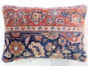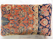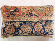 | カシャーンの古い絨毯からのクッションカバー。 ペルシャ絨毯の最高峰と称されるカシャンの全盛期は19世紀とされ、正にお宝と言えるこの当時の作品は芸術品の 域に達しており、殆どが個人や博物館等の所蔵となっています。 (最高峰がどうかは個体により評価が異なりますので、あくまで一般論です。) 昨今、市場に出てくるものは20世紀の作品が大半ですが、今回手に入れたものは19世紀の末、1890年以前に 制作された作品です。 この絨毯はイスタンブルでもかなり古参の店で長らく放置されていました。 全体画像はその時に撮影した、クリーニング前のものです。 フィールド部分には、赤色の色むらを使ってあります。 カシャーンに色むら?と思われるかもしれませんが、最高峰のモタシャム・カシャーンには随所に色むらを使っている 事に定評があり、これも迷う事なく色むらを使ったのだと思われ、やや淡く染められたパステル調の赤色もその影響が 及んだものと思われます。 また、このカシャーンは唐草模様の描写が特に繊細で、花弁は一つ一つが本物の草花と同じかそれ以上に生きていきと 描かれています。 特にボーダー部に顕著であり、細密な花柄模様が隙間なく押し込まれています。 この画像をテヘランの絨毯屋に見て貰った所、デザイン性が見慣れたカシャーンと違うので、何人か友人に聞いてみる から少し待ってと言われたほど。 同じ一枚の絨毯を織り上げるのにここまでの手間暇を掛けているという事は、これは個人が発注した作品と思われます。 大振りなサイズが見栄えがするのは当然ですが、これは小さなサイズでもぎゅっと模様を小さく押し込んであるので、 見事という言葉しか見つかりません。 カシャーンのアンティーク絨毯の素晴らしさは織り目の細かさとウールの品質の素晴らしさに顕著で、それは古く なればなるほど優れています。 油脂分を多く含むウールは、経年により妖艶な艶を放ち見るものを誘惑します。 もしパイルが擦り切れていればその魅力も分かり難くなりますが、今回のカシャーンも何らかの事故で穴が開いて 使われなくなったお陰で、全体画像をご覧の通り、そのままでも販売可能であり、現状のままに保存されていました。 当初、修理した上で販売する計画でしたが、小さな破損まで含めると修理代金が絨毯の原価の何倍にもなる事から、 止むを得ずクッションカバーに加工しました。 穴の部分を避けて全ての部分をクッションカバーにしましたので、今回はミニバック等はありません。 また、前回の作品ではボーダーが中心になりましたが、今回はフィールド部分も多く入ります。 価格面では前作と同じサイズ比ベースの価格率とし、パイルの状態等から微妙に差を設けてあります。 |