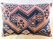 | こちらの頁でご紹介するアンティークのクッションは、どれも本当に100年以上経過した天然染料のキリムです。 昨今、半分以上天然色が使用されていれば80年程度のキリム(=化学染料ミックス)であってもアンティークの天然色と謳わますが、 私がご紹介するアンティークのクッションカバーに限っては、間違いなく100%天然色です。 しかも、通常良いキリムはもっと付加価値の高い品物に加工される為、クッションカバー用ににカットされるキリムは、かなりダメージの あるものか、グレードの劣る物が一般的です。 そういった品物は私の好む所ではないので、とびきり上等なアンティークキリムを買い取ってオリジナルを作りました。 アンティークキリム自体消滅しつつあるため、数量は限定されますが、二度と手に入らない最高級品を取り揃えました。 |